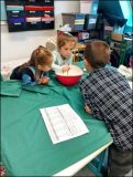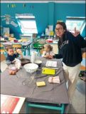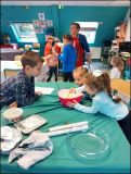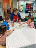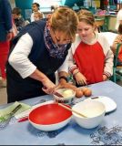 Peser, diviser, comparer les parts… autant de manipulations concrètes qui ont permis d'appréhender les notions de proportions, tandis que les plus jeunes ont appris à casser un oeuf ! Puis comme souvent, la théorie a trouvé son prolongement dans le plaisir gourmand : « Mmmm… que c’est bon de lécher la pâte ! »